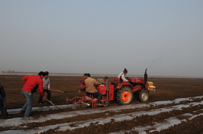 连日来,方邱湖农场千亩高效种植集中区内,呈现出一派繁忙的景象,为种植马铃薯施肥、播种、布膜、浇水的人们络绎不绝。去年底受罕见低温气候影响,在马铃薯播种过程中,种植户遇到了一些难题,农场委托集团公司老领导陈洪真与安农大马铃薯课题组联系,邀请专家为种植户释疑解惑,同时运来了急缺的马铃薯种子。