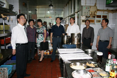 5月20日上午,按照省政府的部署,省直爱国卫生运动及手足口病检查组到农垦检查夏季爱国卫生活动开展及手足口病防治情况。省农垦集团公司办公室负责人就农垦系统开展夏季爱国卫生活动及手足口病防治工作作了全面汇报,省农垦集团公司副总经理刘超就此项工作向检查组进行了说明,并与集团公司副总经理陈仁虎一起陪同检查组到农垦新长城大酒店餐厅后堂操作间进行现场检查。检查组对农垦爱国卫生活动及手足口病防治工作给予了充分肯定,并就相关工作提出了合理建议。