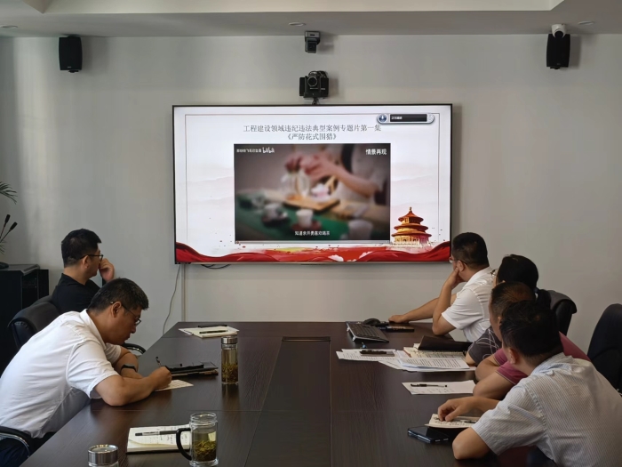 为进一步提高公司全体党员党性修养,增强纪律意识、规矩意识和责任意识,7月5日,农垦建筑公司召开党纪学习教育专题党课暨警示教育大会,党委书记、董事长张露结合党纪学习体会、树牢廉洁意识、打造廉洁工程,为大家讲授了一堂生动、深刻的专题党课。随后与会人员集中观看了工程领域违纪违法警示教育片,用发生在身边的违纪违法案例给全体党员干部“扯袖子”“敲警钟”。