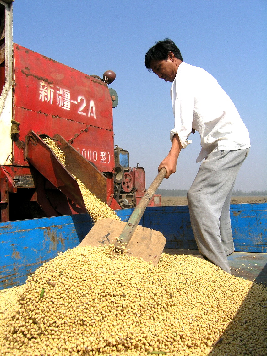 今年国庆、中秋两节期间,潘村湖农场广大干部职工仍坚持奋战在秋收第一线。到10月4日,全场3.2万亩大豆已全部收获完毕。图为一组秋收场景。
