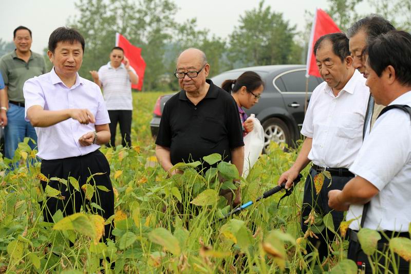 今天在华阳河农场进行大豆测产和实收,平均亩产量达到278.3公斤,说明长江流域的大豆产量还有提升空间、潜力很大。这是中国工程院盖钧镒院士在安徽高蛋白大豆大面积高产示范现场测评观摩会上给出的评语。914,盖钧镒院士率常汝镇、吴存祥、周新安等十几位全国大豆界知名专家,现场对安徽农垦华阳河农场万亩大豆高产示范片进行了测产验收。