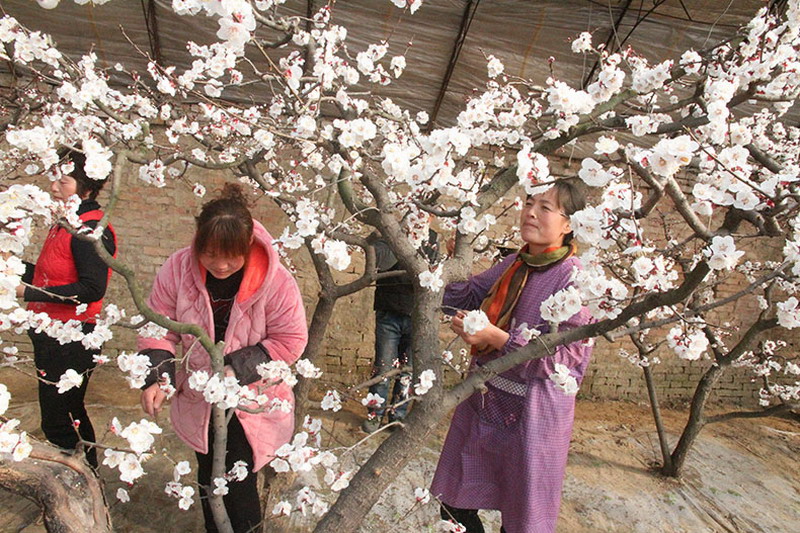 新年元旦以来,安徽砀山果园场深抓高效设施果园生产管理,为新一年职工高效农业增效增收打好基础。笔者近日走进一分场职工高效杏棚,见到了棚内棚外“冰火两重天”的景象,棚外数九严冬、寒风凛冽,棚内杏花绽放、暖意融融,职工正在忙着授粉。望着满树满枝的杏花,杏棚主人、省农垦高效农业“三十佳”职工王文萍满面春风地告诉我们:今年虽是受到不利天气影响,但场里服务到位、自家管理上心,目前杏棚树势好、生长旺、花芽多,预示着又迎来了一个丰收年。当笔者问及每个棚的收入时,正在现场指导授粉的分场技术员接茬道:她家去年一个杏棚收入3万多元,从目前园相看,今年收入还要好。王文萍赶忙说:场里政策支持好,才让我家收入一年更比一年高。据了解,全场在寒冬绽放的高效设施杏园共有10余亩、8个大棚。